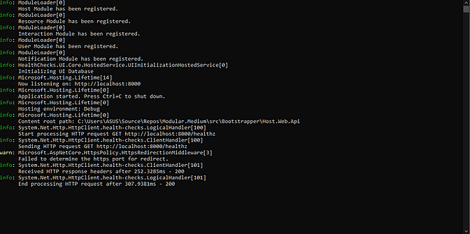 Uygulamamızı çalıştıralım. Hem konsolda hem de healthCheck-ui ekranında bizi neler bekliyor, görelim.